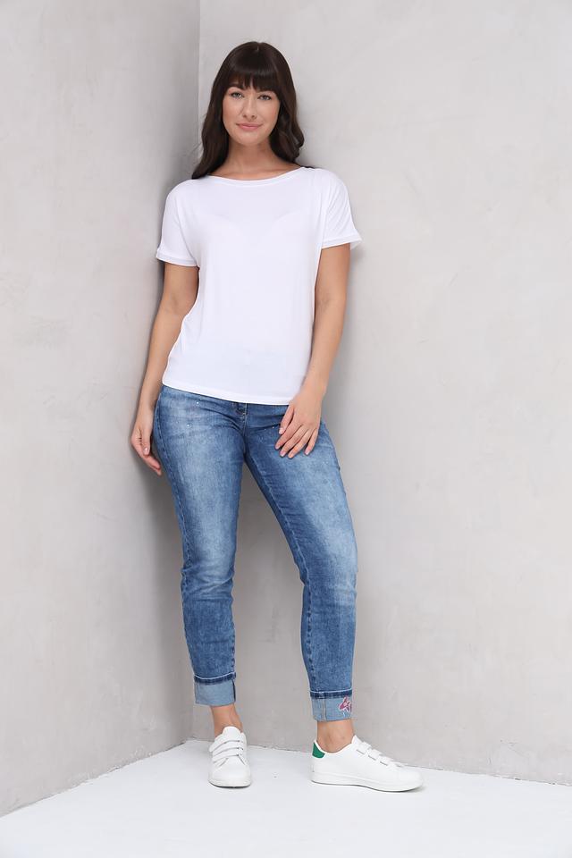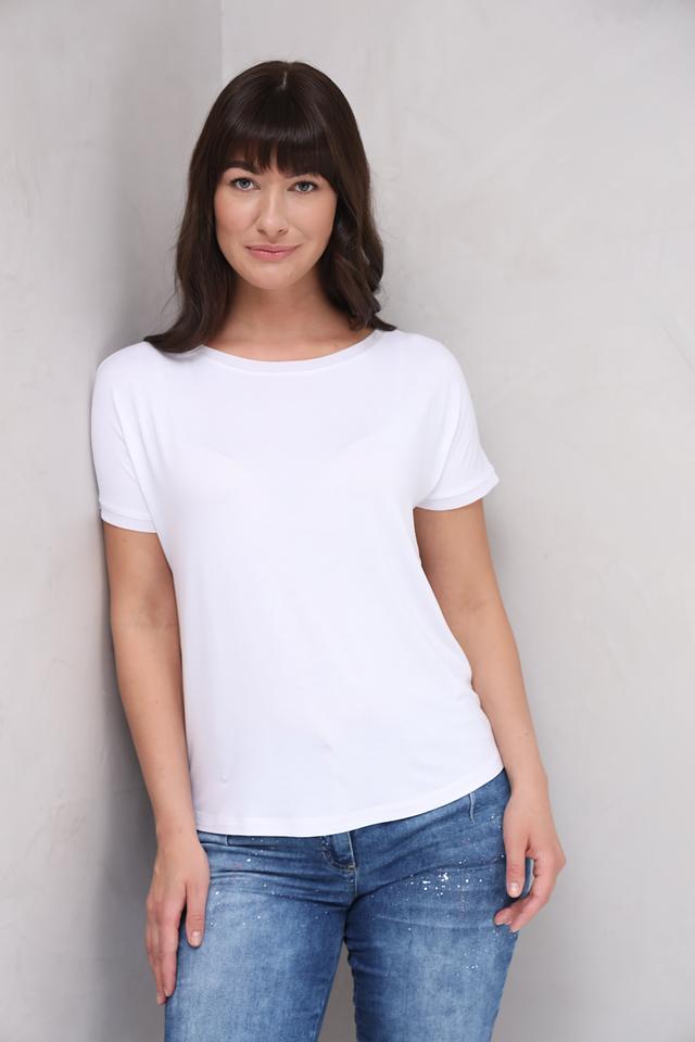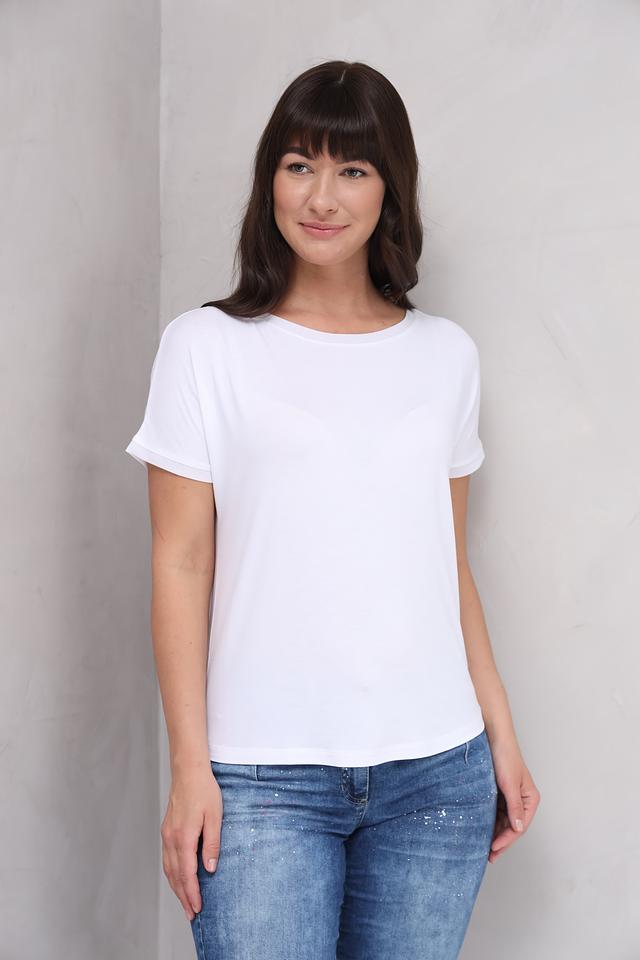 Эта белая футболка от MORE and MORE станет незаменимой базой для вашего повседневного образа. Изготовленная из высококачественной вискозы с добавлением эластана, она приятна к телу, хорошо драпируется и обеспечивает комфорт в течение всего дня.