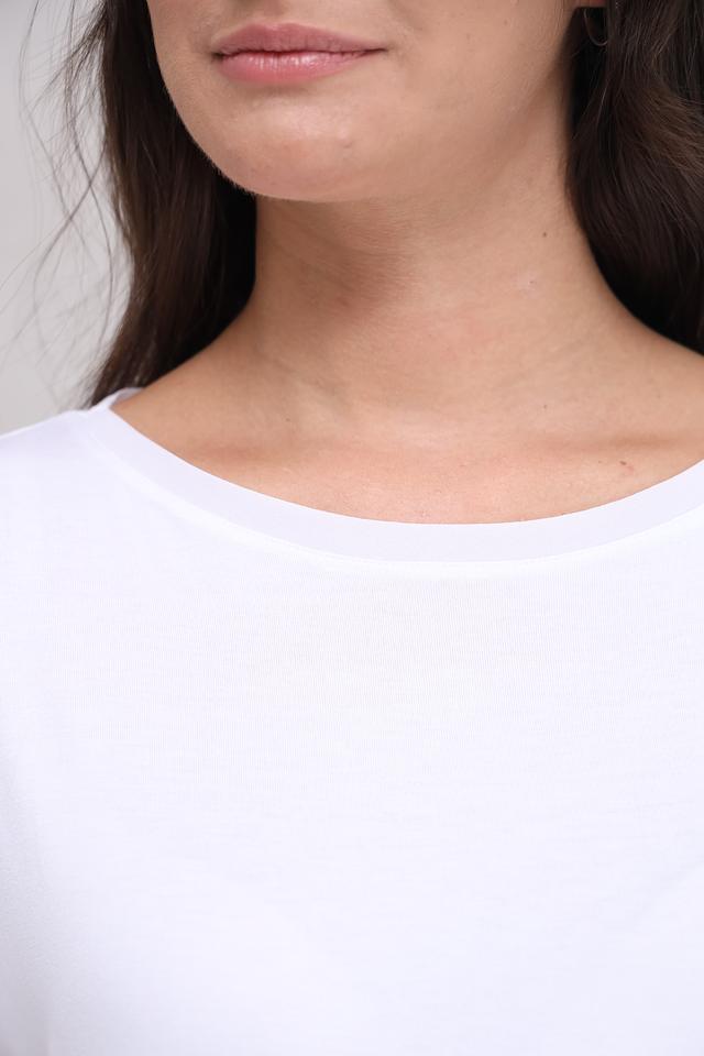 Состав ткани: 95% вискоза, 5% эластан. Эта комбинация обеспечивает не только комфорт, но и долговечность изделия. Футболка легко стирается и быстро сохнет, сохраняя свой первоначальный вид даже после многократных стирок. Универсальный белый цвет позволяет сочетать эту футболку с любыми другими элементами гардероба, создавая разнообразные образы.