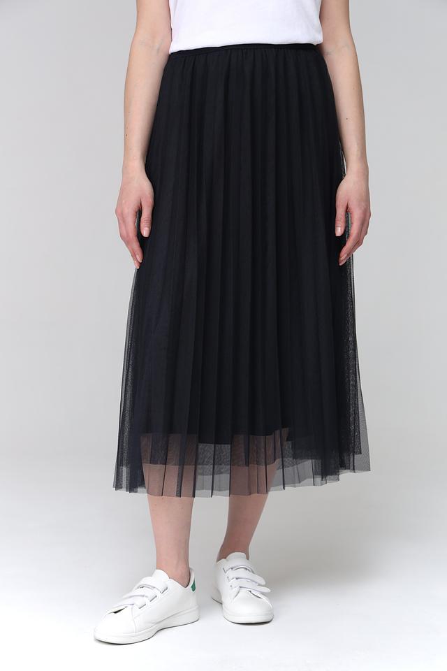 Юбка имеет классический чёрный цвет и фасон плиссе, который придает ей изящность и женственность. Длина миди делает ее универсальной для различных случаев – от повседневной носки до особых мероприятий.