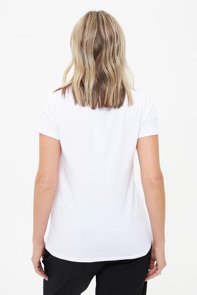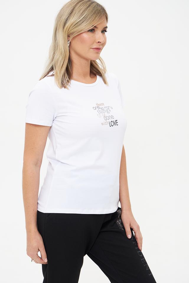 Белая футболка от MORE and MORE с оригинальным принтом – отличный выбор для создания повседневного образа. Изготовлена из мягкого хлопка с добавлением эластана для комфорта и хорошей посадки. Состав: хлопок 95%, эластан 5%