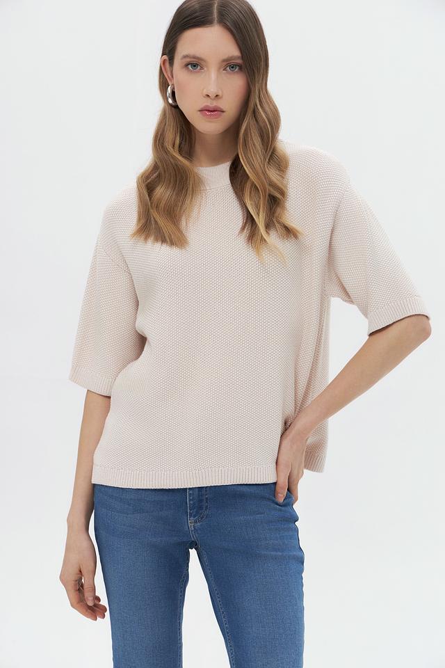 Бежевый пуловер от MORE and MORE с коротким рукавом и округлым вырезом горловины станет отличным дополнением к вашему гардеробу. Изготовлен из мягкого трикотажа с текстурной вязкой, обеспечивающей комфорт и стильный вид. Состав: вискоза 50%, полиэстер 28%, полиамид 22%