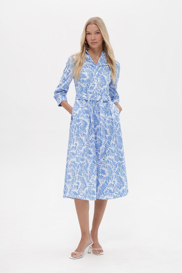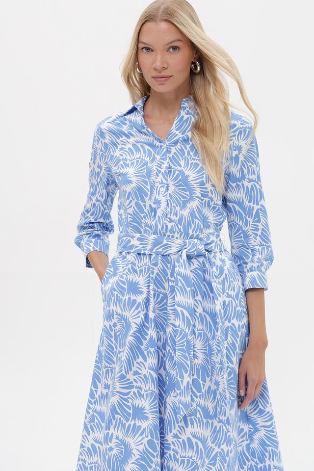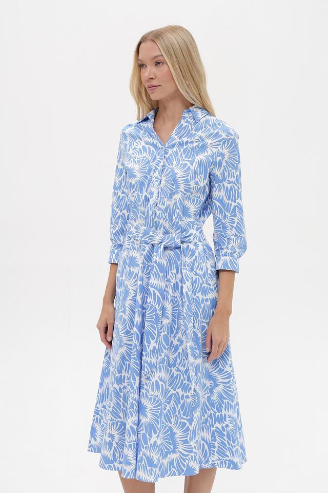 Голубое платье-рубашка от MORE and MORE с ярким цветочным принтом. Модель выполнена из хлопка с добавлением эластана, что обеспечивает комфорт и свободу движений. Состав: хлопок 97%, эластан 3%