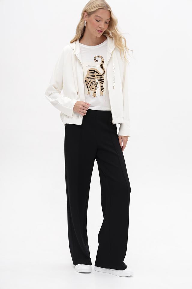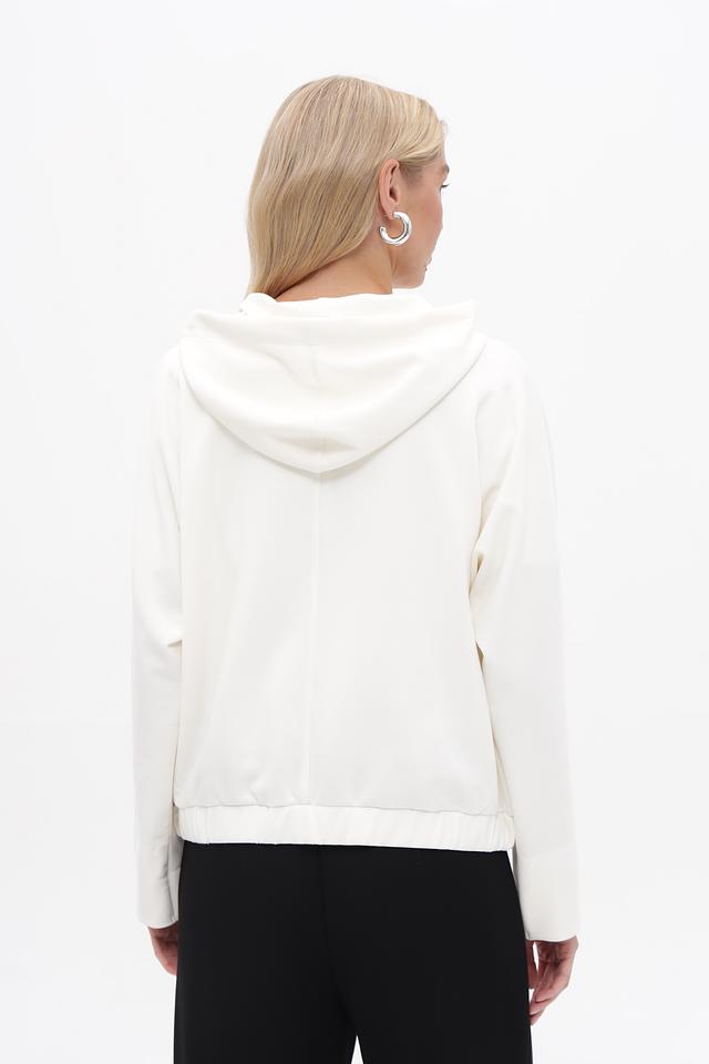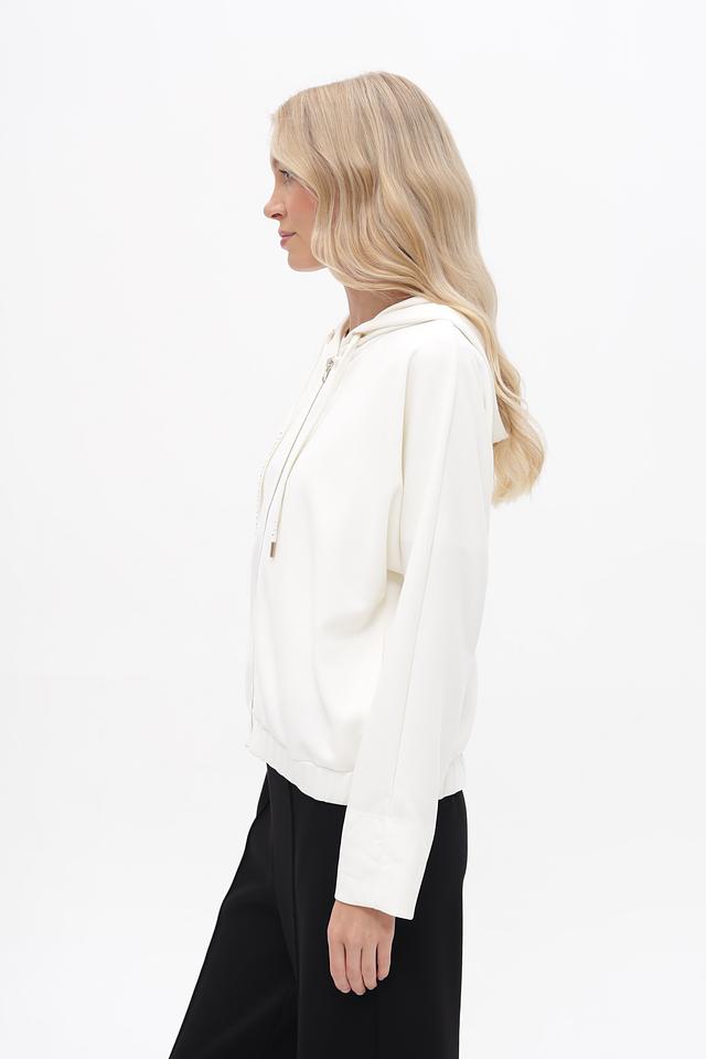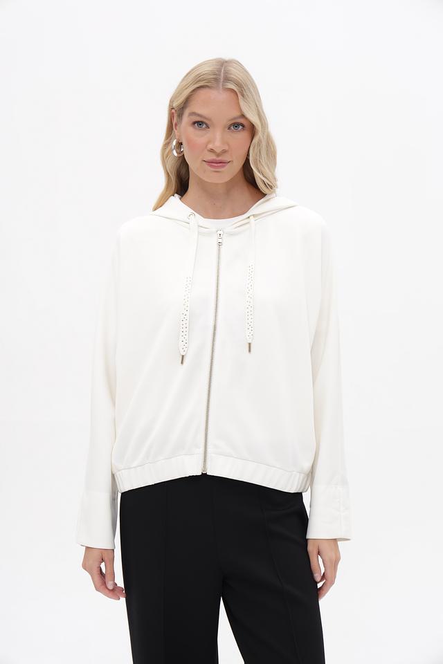 Белый жакет от MORE and MORE с капюшоном и застежкой-молнией станет отличным дополнением к вашему гардеробу. Модель выполнена из мягкой ткани с добавлением модала и эластана, обеспечивающих комфорт и свободу движений. Состав: модал 50%, полиэстер 44%, эластан 6%