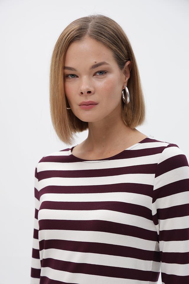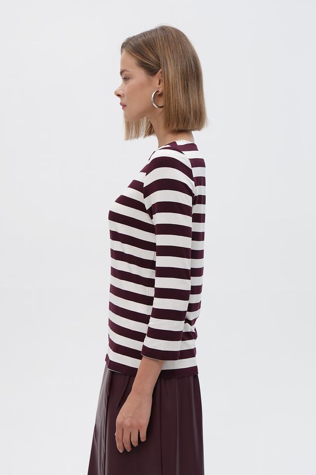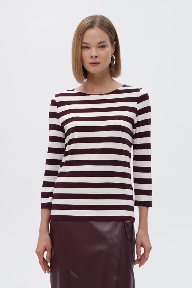 Блузка More and More бордового цвета с классическим полосатым принтом. Изготовлена из мягкой вискозы с добавлением эластана для комфорта и хорошей посадки. Подчеркнет ваш стиль и станет отличным дополнением к базовому гардеробу. Состав: вискоза 95%, эластан 5%