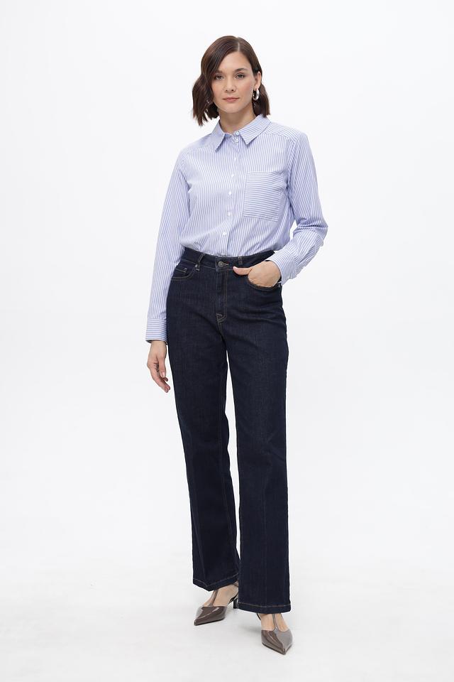 Джинсы с высокой посадкой визуально удлиняют ноги и создают стройный силуэт. Пять карманов – два передних, два задних и один небольшой карман для мелочи – обеспечивают функциональность и удобство. Шлевки для ремня позволяют подчеркнуть талию.