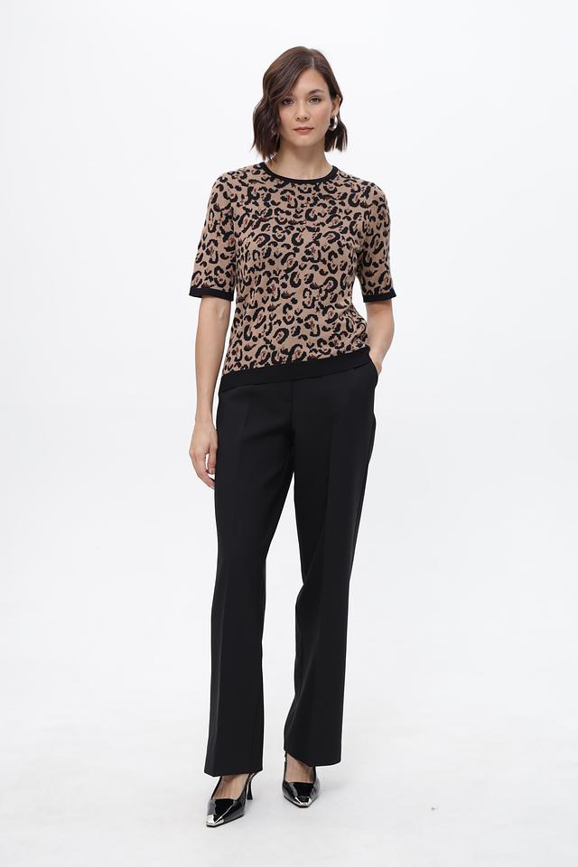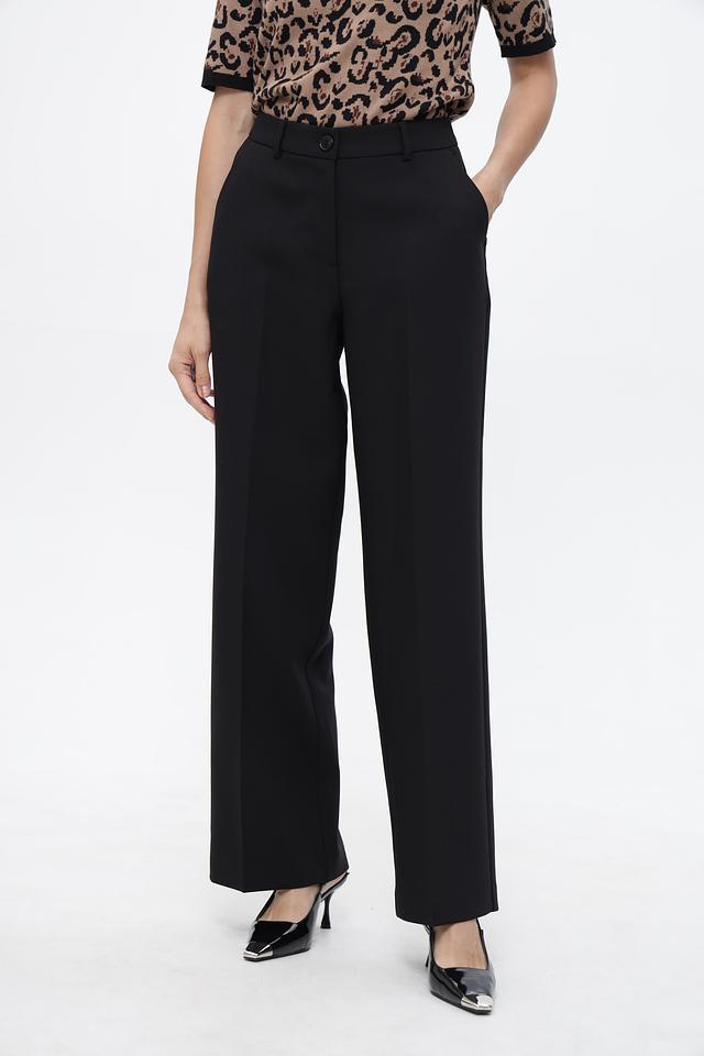 Брюки имеют прямой крой и среднюю посадку, что обеспечивает комфортную посадку по фигуре. Ткань, в составе которой переработанный полиэстер, вискоза и эластан, приятна на ощупь и хорошо держит форму.