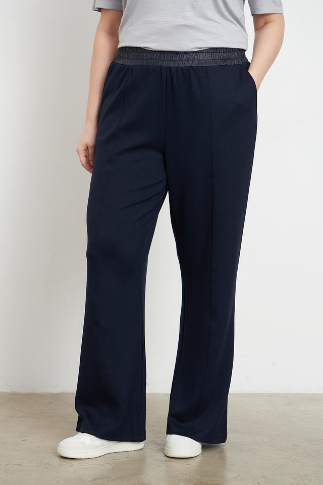 Брюки имеют прямой, слегка расклешенный к низу крой, который визуально удлиняет ноги и создает женственный силуэт. Эластичный пояс обеспечивает удобную посадку по фигуре, а боковые карманы добавляют функциональности.