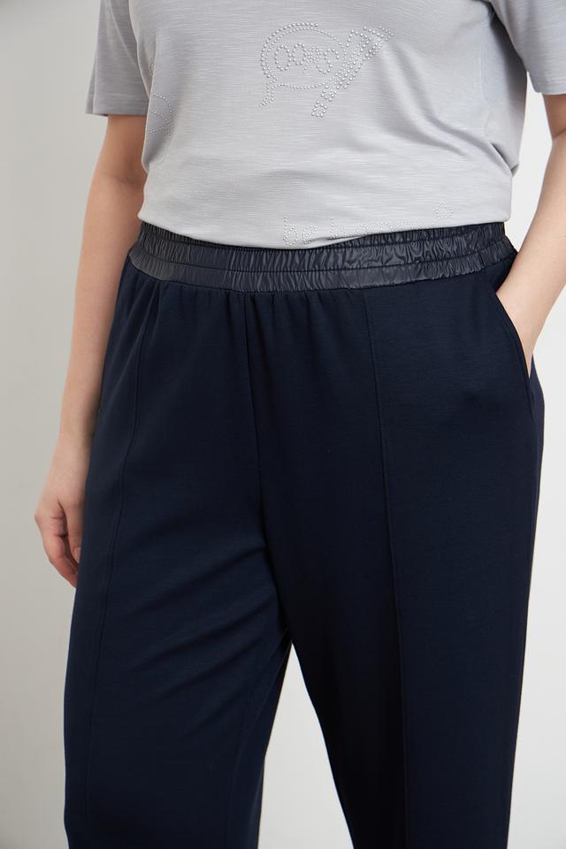Ткань, из которой изготовлены брюки, состоит из 54% модала, 42% полиэстера и 4% эластана. Модал придает ткани мягкость и приятные тактильные ощущения, полиэстер обеспечивает устойчивость к износу, а эластан – эластичность и свободу движений.