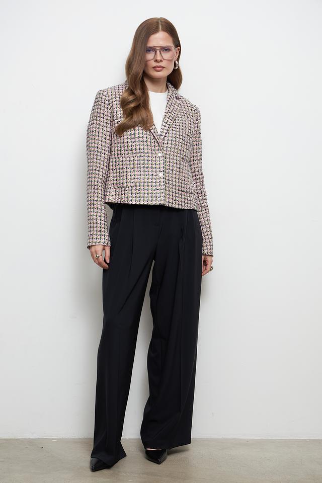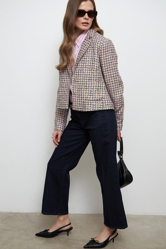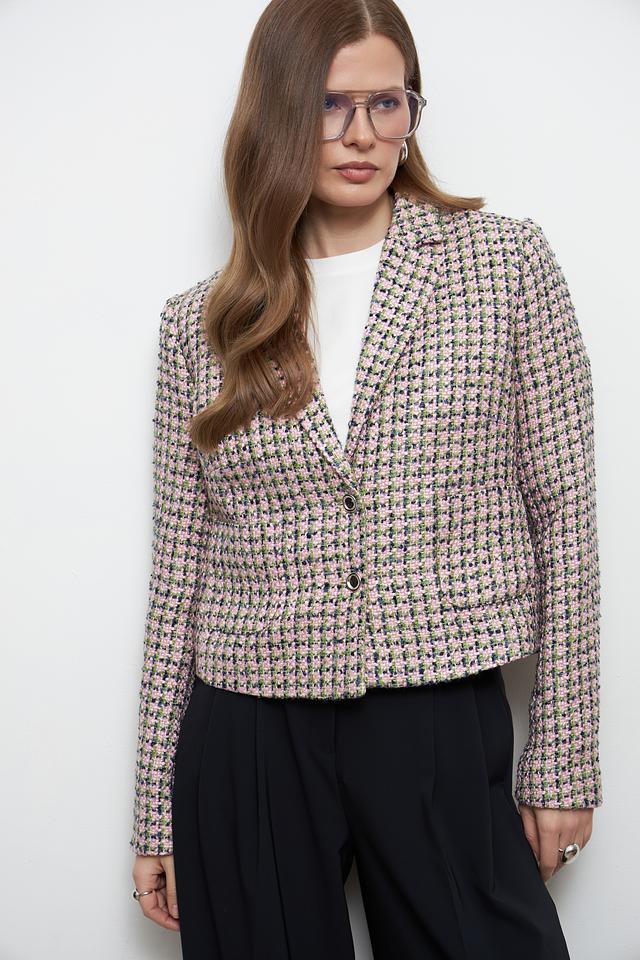 Модель дополнена лацканами и застежкой на пуговицы, что придает ей элегантный и завершенный вид. Жакет прекрасно сочетается с различными элементами гардероба, от повседневных джинсов до строгих юбок и платьев.