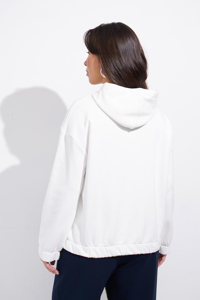 Худи имеет удобный крой, который не сковывает движения, и капюшон со шнурками для регулировки. Манжеты и нижний край изделия выполнены из эластичной резинки, обеспечивающей плотное прилегание. Состав ткани – 65% хлопок и 35% полиэстер, что гарантирует мягкость, комфорт и долговечность изделия.