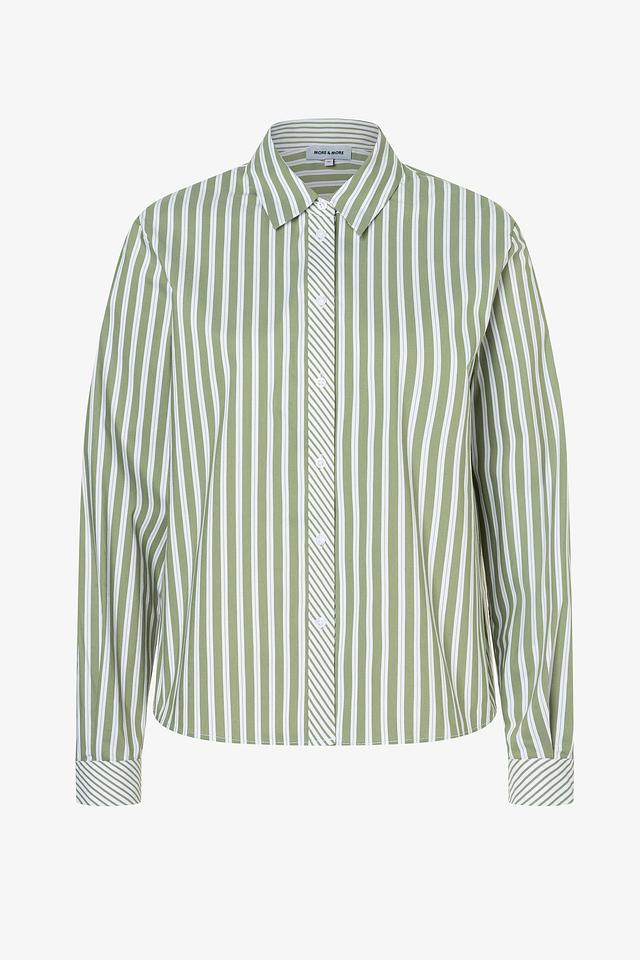 Блуза MORE and MORE зеленого цвета в классическую полоску. Модель выполнена из хлопка с добавлением полиэстера и эластана, что обеспечивает комфорт и удобство в носке. Отличный выбор для создания повседневных образов. Состав: хлопок 76%, полиэстер 22%, эластан 2%