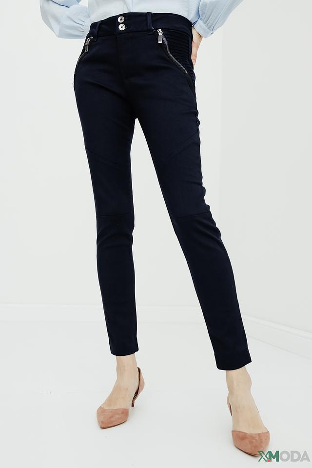Джинсы имеют прямой крой, который подчеркивает фигуру, не сковывая движения. Оригинальным акцентом являются декоративные молнии на карманах, добавляющие образу дерзости и современности.