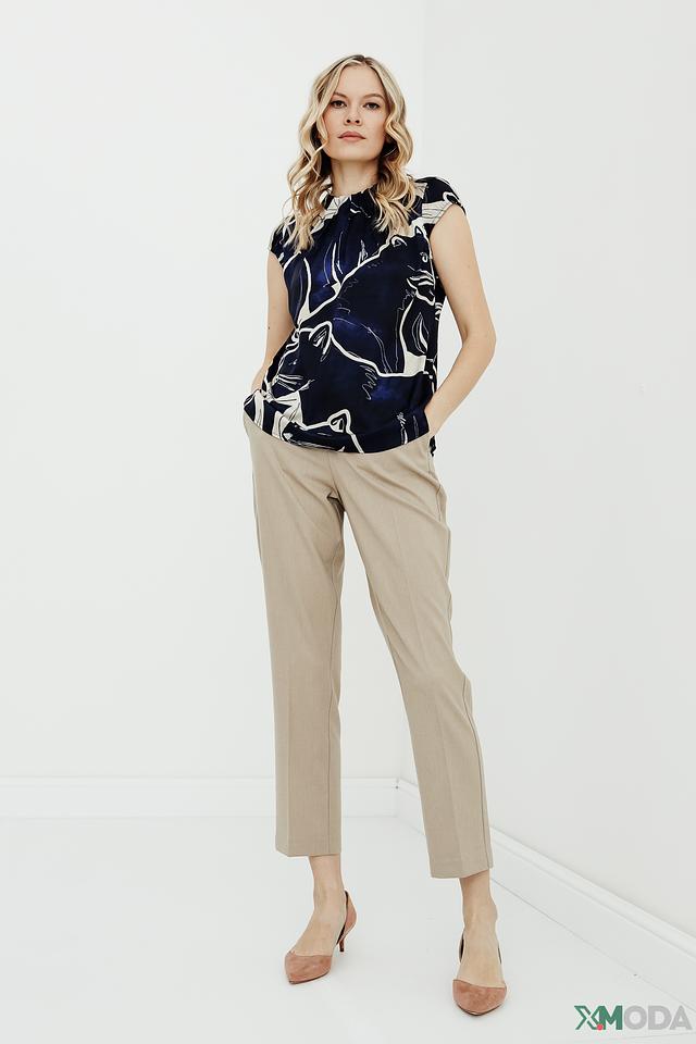 Модель имеет стандартную посадку по талии, застежку на молнию и пуговицу, а также боковые карманы. Прямой крой брюк визуально вытягивает силуэт и делает образ более стройным. Брюки идеально сочетаются с блузками, рубашками и жакетами, создавая стильные и элегантные комплекты.