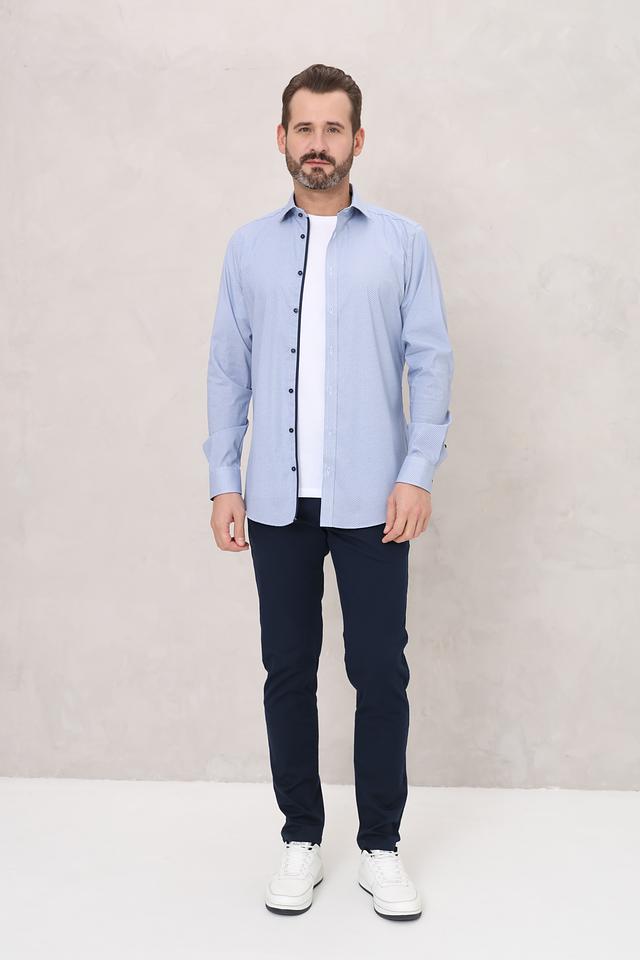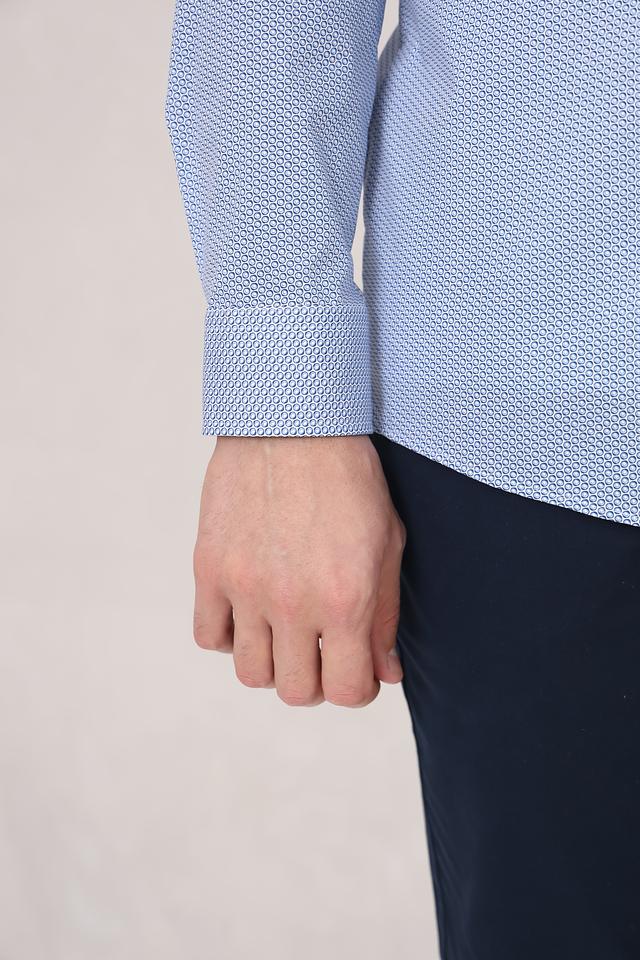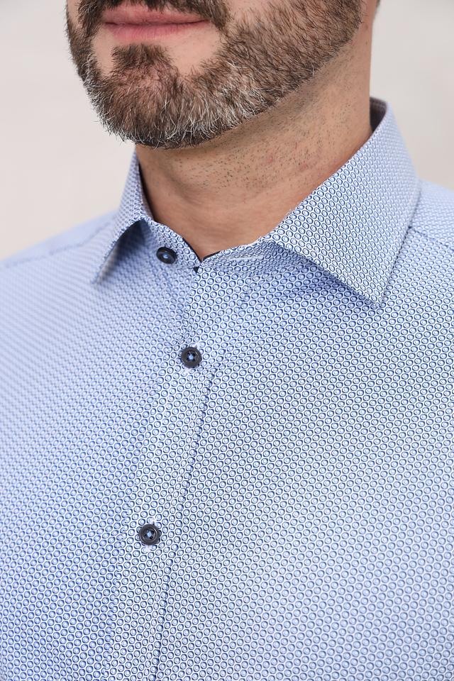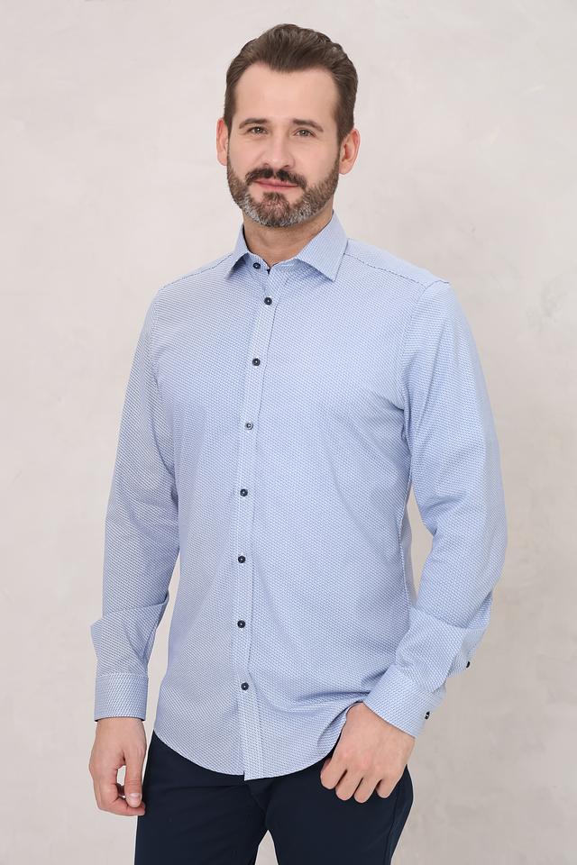 Мужская рубашка Venti голубого цвета с мелким геометрическим принтом. Классический крой и длинные рукава делают эту рубашку универсальным элементом гардероба. Состав: хлопок 97%, эластан 3%