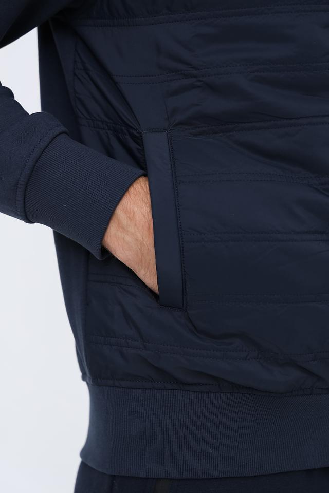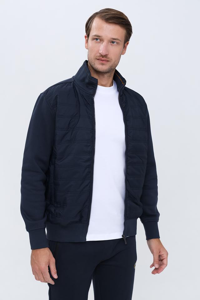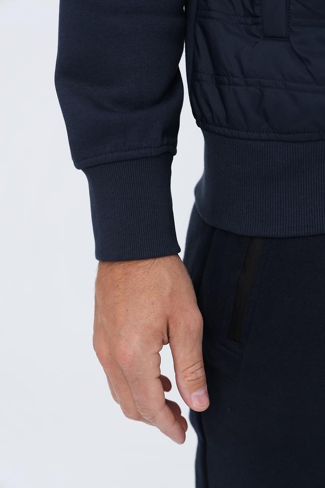 Кардиган имеет классический крой, застегивается на молнию. Стеганая фактура придает модели современный вид и дополнительную теплоизоляцию. Воротник-стойка защищает от ветра. На левой стороне груди расположен небольшой логотип бренда.