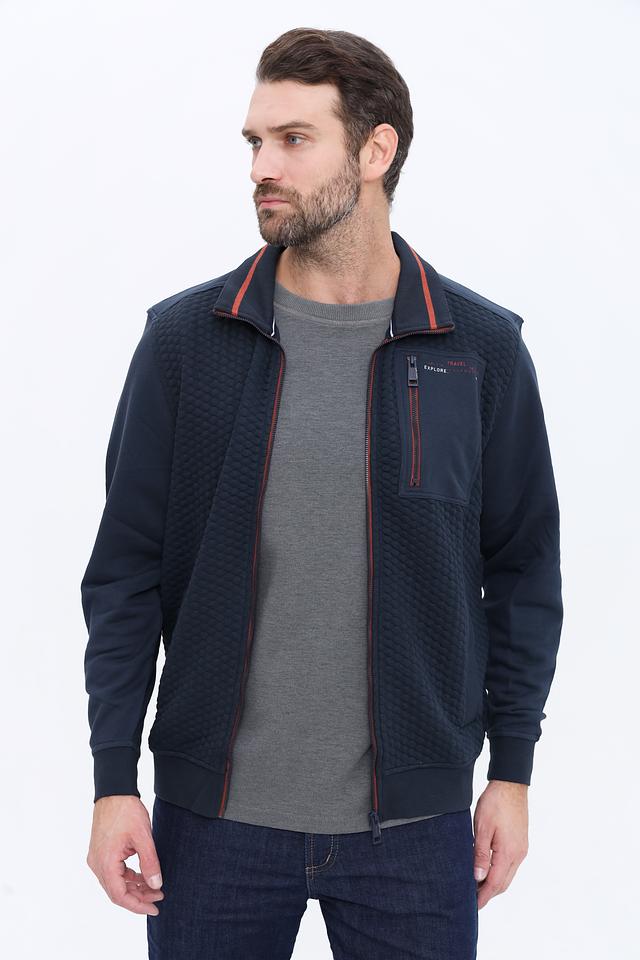 Мужской кардиган Casa Moda синего цвета – это стильное и удобное решение для прохладной погоды. Модель выполнена из хлопка с добавлением полиэстера и эластана, имеет стеганую фактуру и оформлена контрастной молнией. Состав: хлопок 53%, полиэстер 45%, эластан 2%