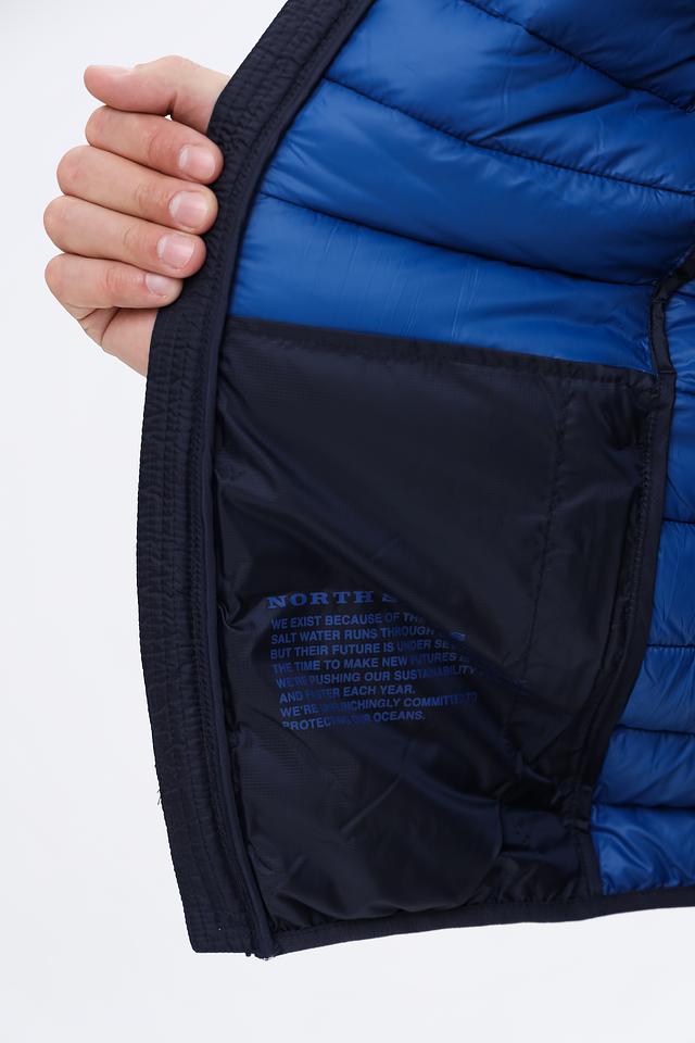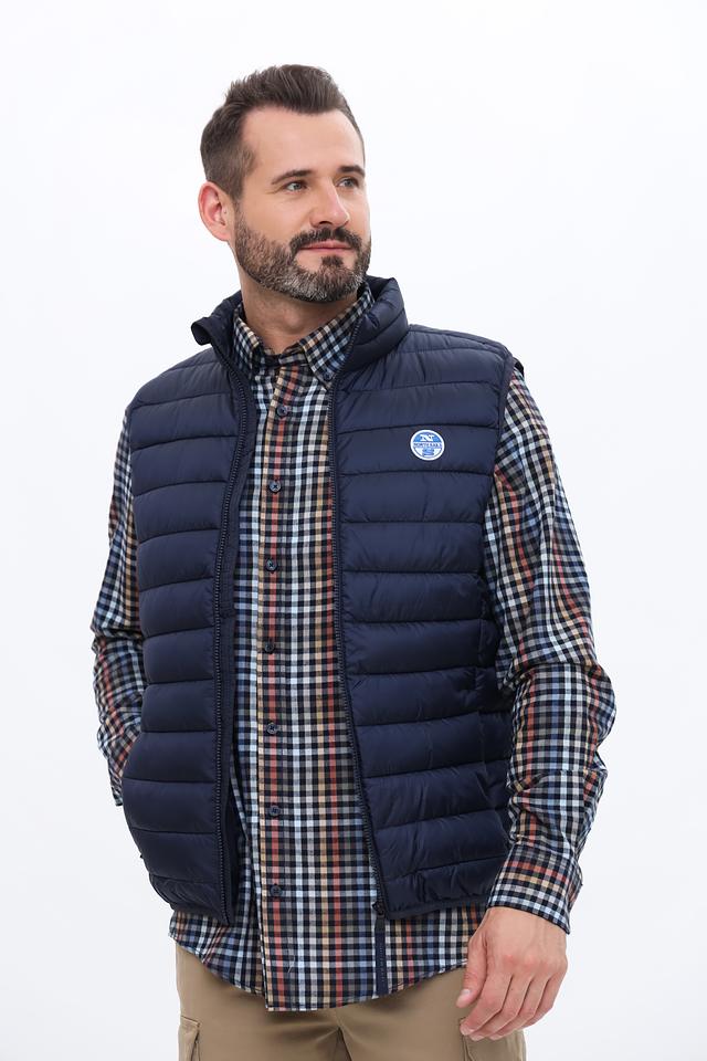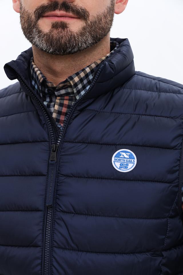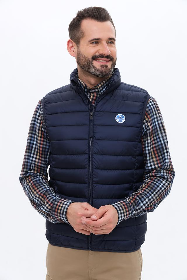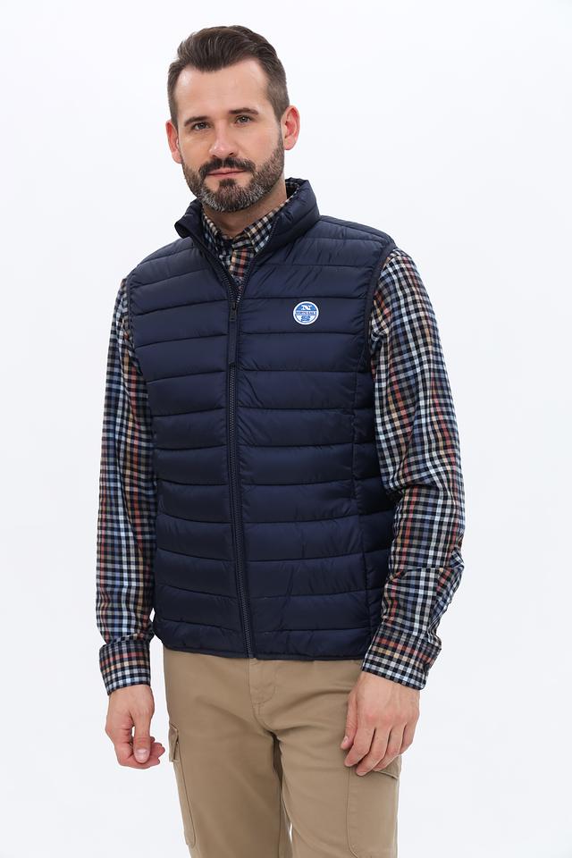 Синий стеганый жилет North Sails – практичная и стильная верхняя одежда для прохладной погоды. Удобный крой и минималистичный дизайн делают его универсальным дополнением к любому образу. Изготовлен из 100% полиэстера. Состав: полиэстер 100%