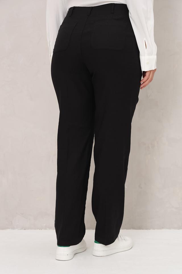 Застёжка на пуговицу и молнию, а также боковые карманы делают брюки практичными и функциональными. Прямой крой визуально удлиняет ноги и создаёт элегантный силуэт. Эти брюки станут отличным дополнением к вашему гардеробу и подойдут для создания как повседневных, так и более формальных образов.