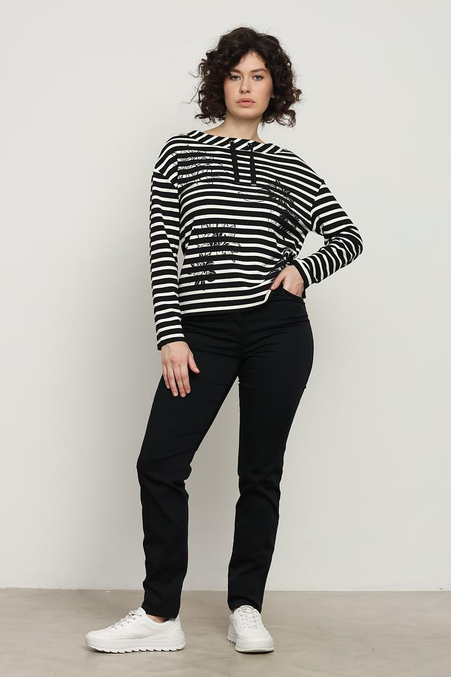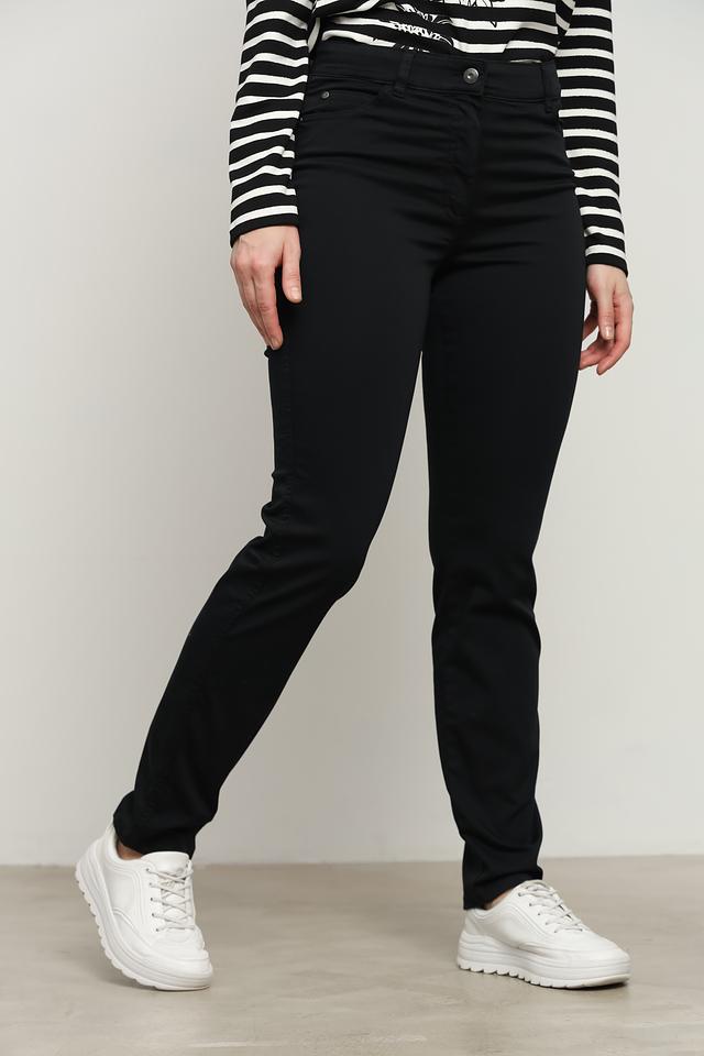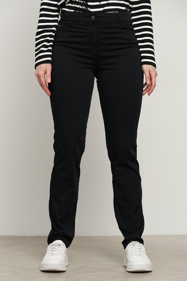 Брюки имеют прямой крой, который подчеркивает фигуру, не сковывая движения. Благодаря составу, включающему хлопок, полиэстер и эластан, они приятны к телу, хорошо держат форму и практически не мнутся.