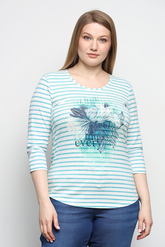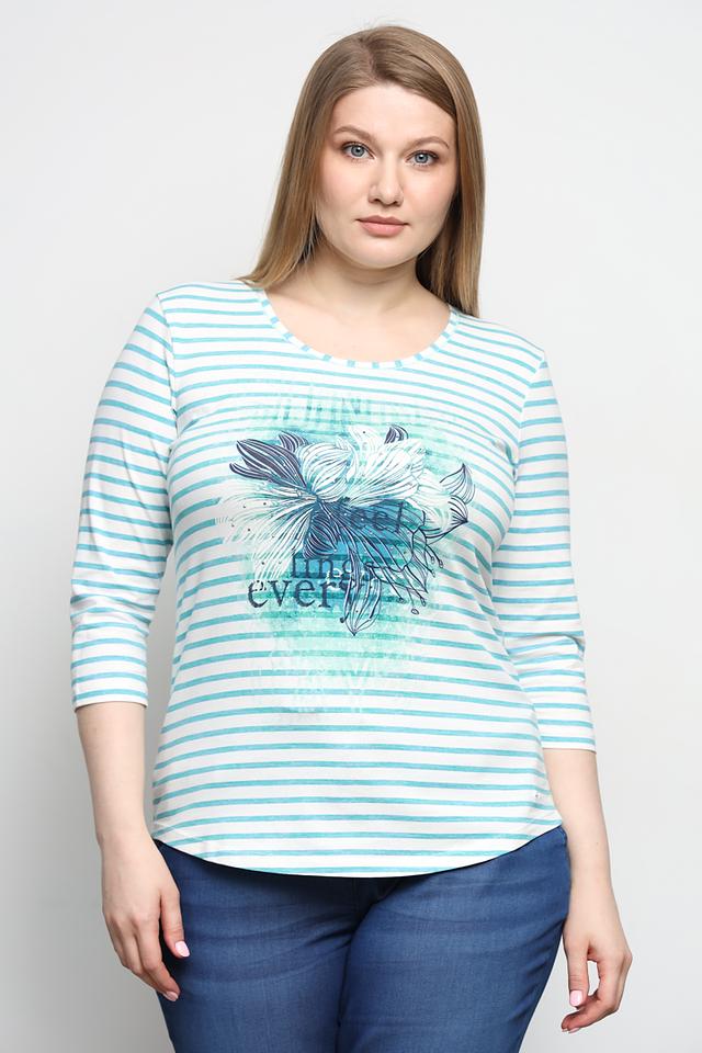 Лонгслив имеет классический крой с длинными рукавами и круглым вырезом горловины. Его отличает яркий и привлекательный дизайн: полоска и крупный цветочный принт, который добавляет образу женственности и оригинальности.