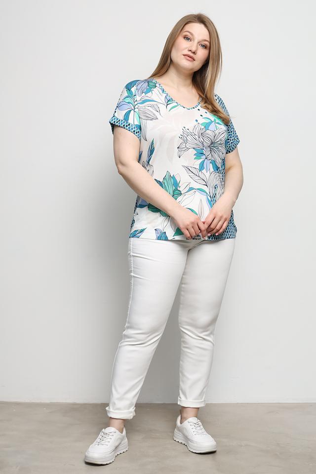 Женская футболка Olsen белого цвета с ярким цветочным принтом. Модель выполнена из мягкого и приятного к телу сочетания хлопка и модала, обеспечивая комфорт в носке. Состав: хлопок 50%, модал 50%