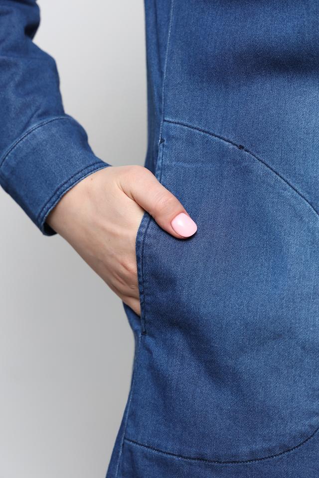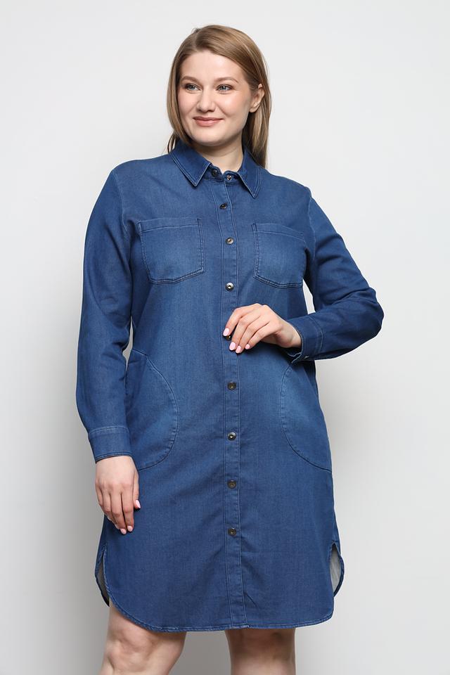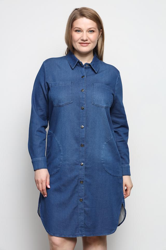 Джинсовое платье рубашка от Olsen выполнено в синем цвете и имеет удобный свободный крой. Модель с длинным рукавом, воротником и застёжкой на пуговицы, дополнена накладными карманами. Состав: хлопок 98%, эластан 2%