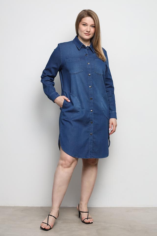 Платье дополнено двумя накладными карманами на груди, которые не только функциональны, но и являются декоративным элементом. Длинные рукава с манжетами завершают образ. Состав ткани: хлопок 98%, эластан 2%, что обеспечивает приятные тактильные ощущения и лёгкость в уходе.