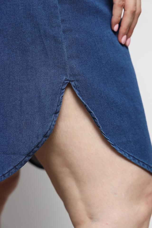 Модель имеет прямой, слегка свободный крой, который обеспечивает комфорт в носке. Платье застегивается на ряд пуговиц по всей длине, что позволяет регулировать степень прилегания и создавать различные силуэты. Воротник рубашечного типа добавляет образу аккуратности и стиля.