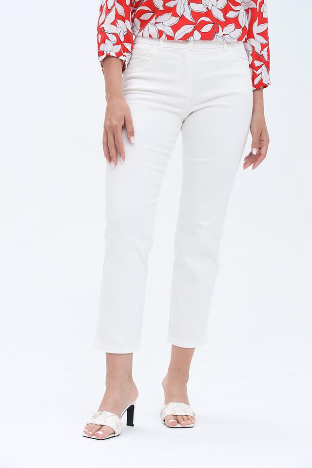 Эти стильные брюки от Olsen станут незаменимой частью вашего повседневного образа. Классический белый цвет легко сочетается с различными элементами гардероба, позволяя создавать разнообразные луки.
