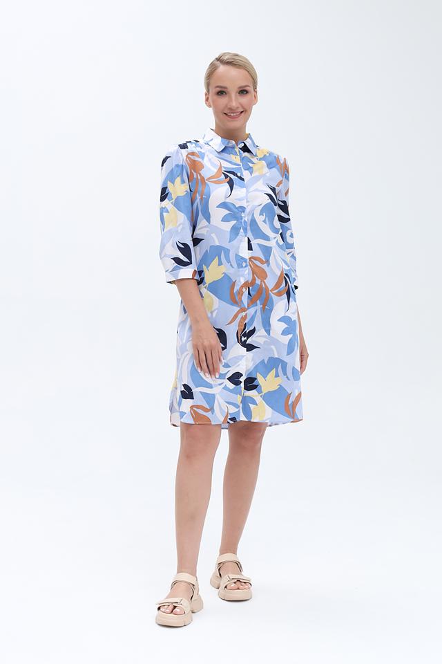 Платье Olsen голубого цвета с ярким цветочным принтом – стильное и комфортное решение для повседневного образа. Модель выполнена из 100% хлопка, что обеспечивает приятные ощущения при носке и легкость ухода. Состав: хлопок 100%
