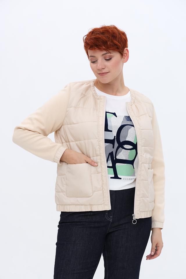 Жакет Olsen бежевого цвета – это стильная и удобная модель с лёгкой стёганой текстурой. Укорочённый крой и застёжка-молния делают жакет практичным и универсальным дополнением к образу. Идеально сочетается с повседневной одеждой. Состав: полиэстер 90%, хлопок 9%, эластан 1%