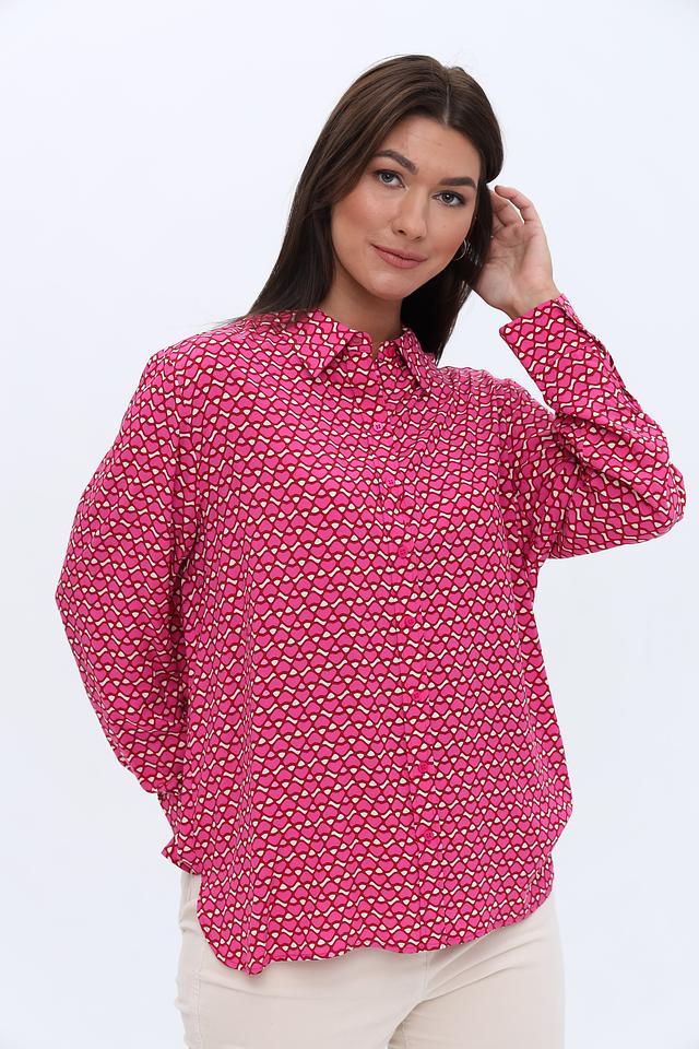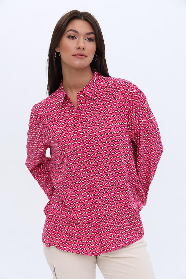 Женская рубашка Olsen фуксия с ярким геометрическим принтом. Изготовлена из 100% вискозы, обеспечивающей комфорт и лёгкость в носке. Отличный выбор для создания стильного и женственного образа. Состав: вискоза 100%