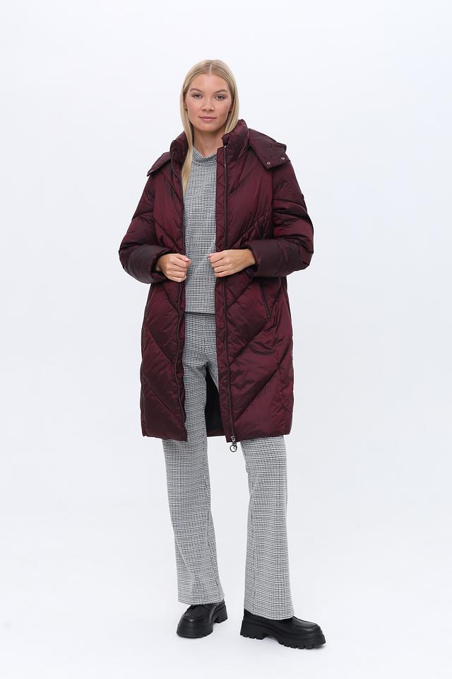 Женское пальто Olsen бордового цвета – это стильное и теплое решение для прохладной погоды. Модель выполнена из полиамида и имеет стеганую фактуру, что придает ей современный вид и обеспечивает отличные теплоизоляционные свойства. Состав: полиамид 100%