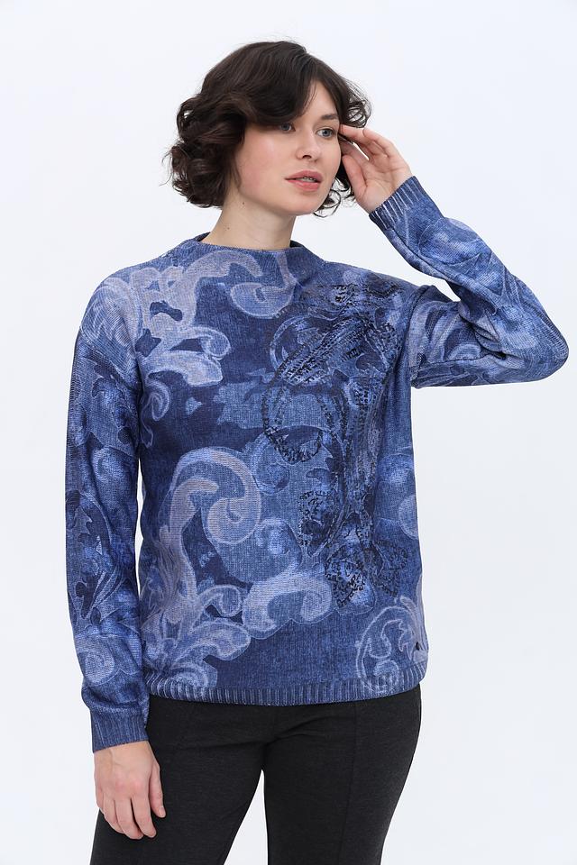 Этот пуловер от Olsen выполнен в синем цвете и украшен выразительным узором, который придает ему уникальность.