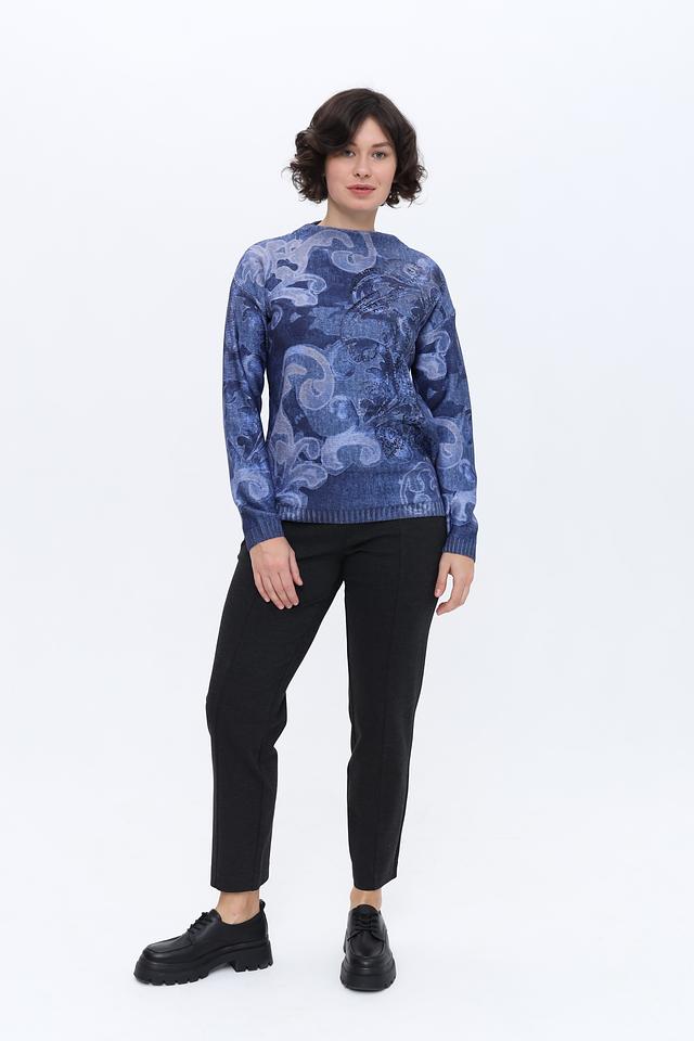 Синий пуловер Olsen с оригинальным узором станет стильным дополнением к вашему гардеробу. Модель выполнена из мягкого трикотажа с добавлением хлопка, что обеспечивает комфорт в носке. Пуловер идеально подходит для создания повседневных образов. Состав: полиакрил 77%, хлопок 17%, полиамид 6%