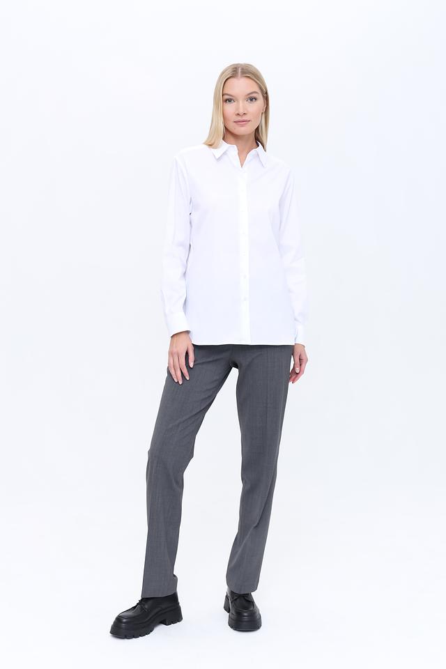 Рубашка имеет длинные рукава и застегивается на пуговицы по всей длине. Воротник рубашки классической формы. Благодаря своему универсальному дизайну, эта рубашка легко сочетается с различными элементами одежды – от брюк и юбок до джинсов.