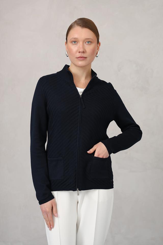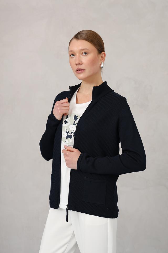 Жакет Olsen тёмно-синего цвета – стильная и удобная модель с застёжкой-молнией. Жакет имеет стеганую фактуру и два накладных кармана. Изготовлен из хлопка с добавлением полиакрила. Состав: хлопок 50%, полиакрил 50%