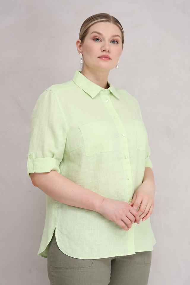 Льняная рубашка Olsen цвета лайм – это стильное и комфортное решение для летнего гардероба. Классический крой, короткий рукав и натуральный лен обеспечивают удобство и воздухопроницаемость. Состав: лен 100%