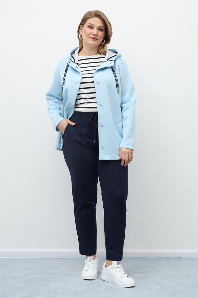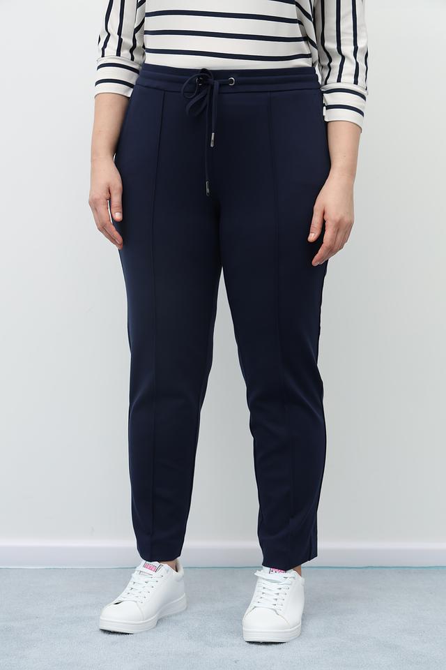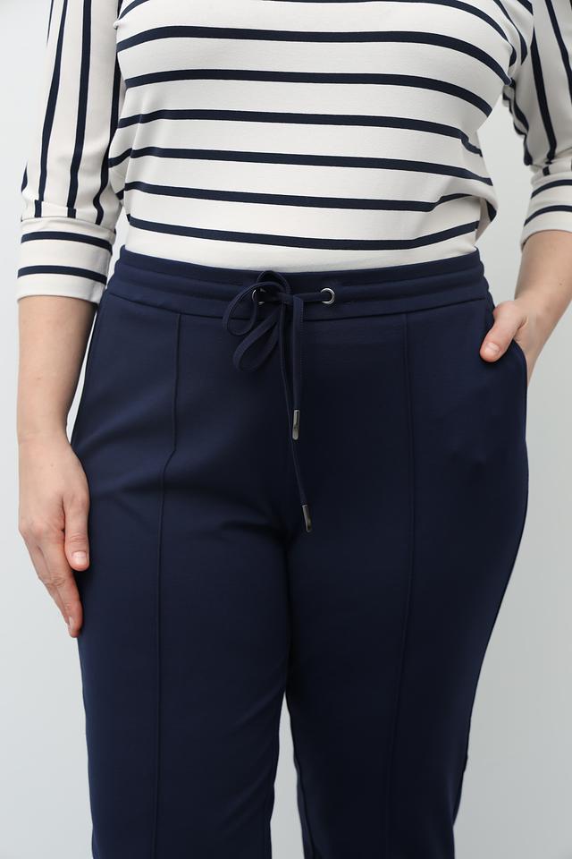 Брюки выполнены в насыщенном синем цвете, который легко сочетается с различными элементами одежды. Прямой крой и умеренная посадка подчеркивают достоинства фигуры, не сковывая движений. Эластичный пояс с завязками обеспечивает идеальную посадку по талии.