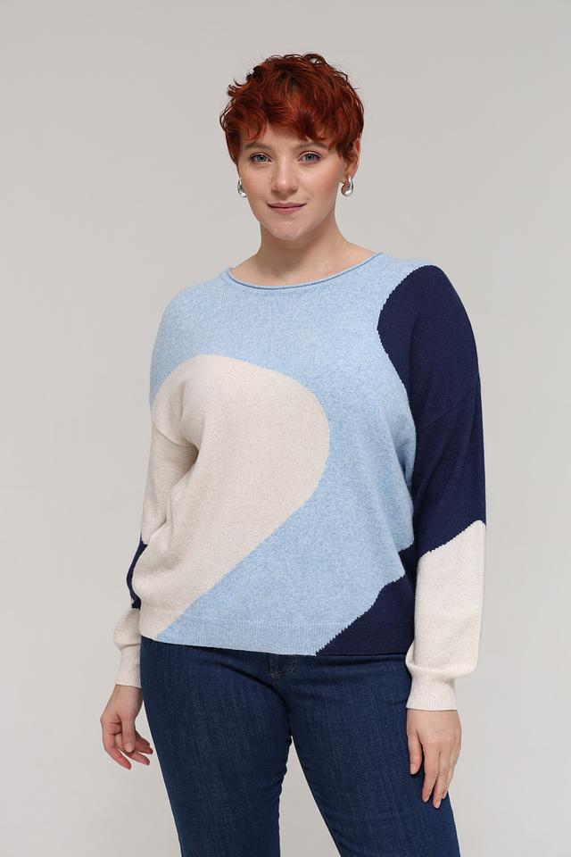 Женский пуловер Olsen голубого цвета с оригинальным геометрическим рисунком станет стильным дополнением к вашему гардеробу. Модель выполнена из мягкого трикотажа, обеспечивающего комфорт в носке. Состав: вискоза 52%, полиэстер 28%, полиамид 20%