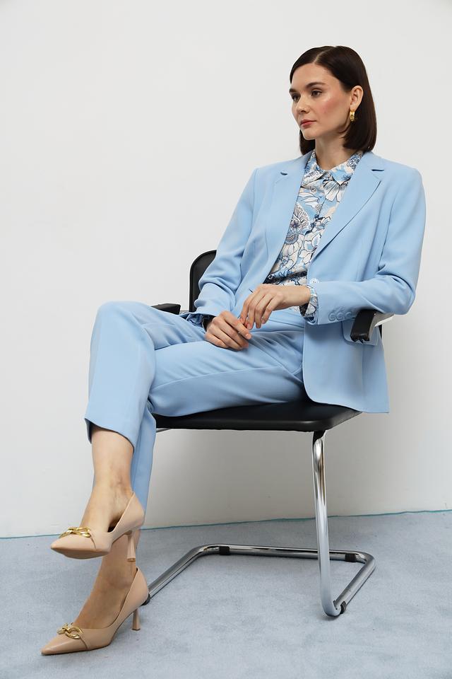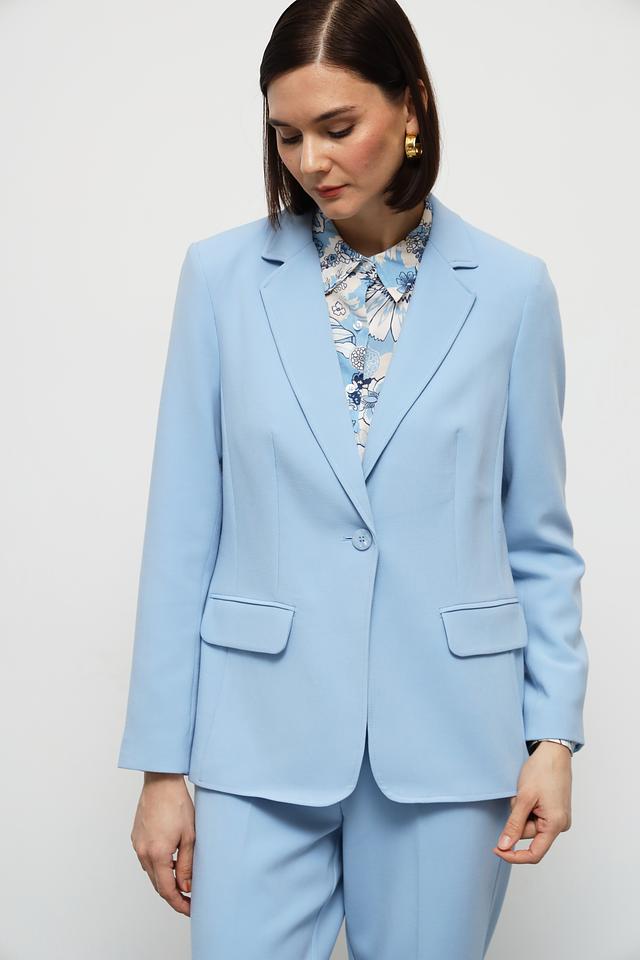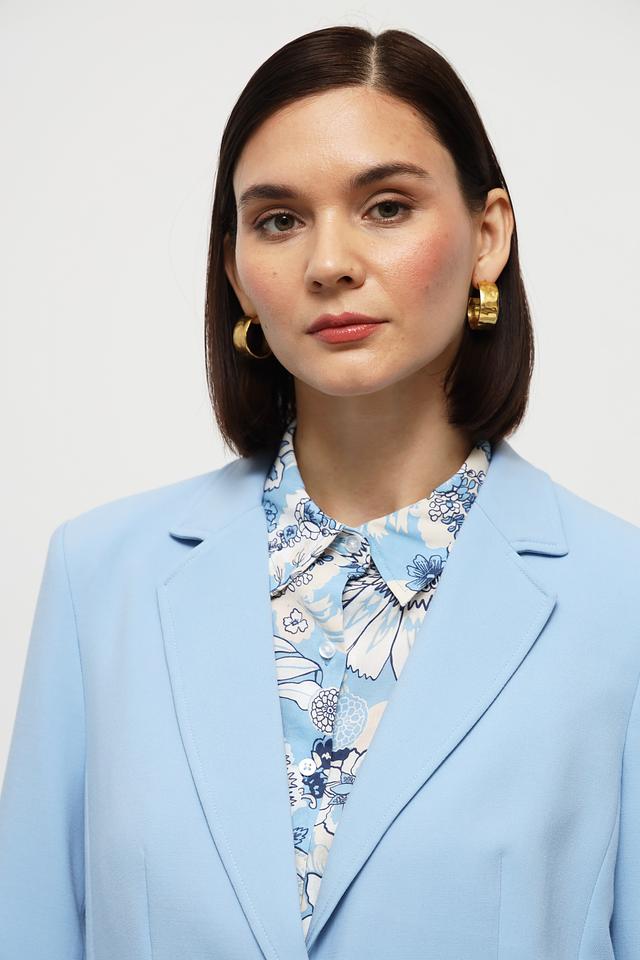 Этот элегантный жакет от Olsen станет прекрасным дополнением к вашему гардеробу. Выполненный в нежном голубом цвете, он идеально подходит для создания как деловых, так и повседневных образов.