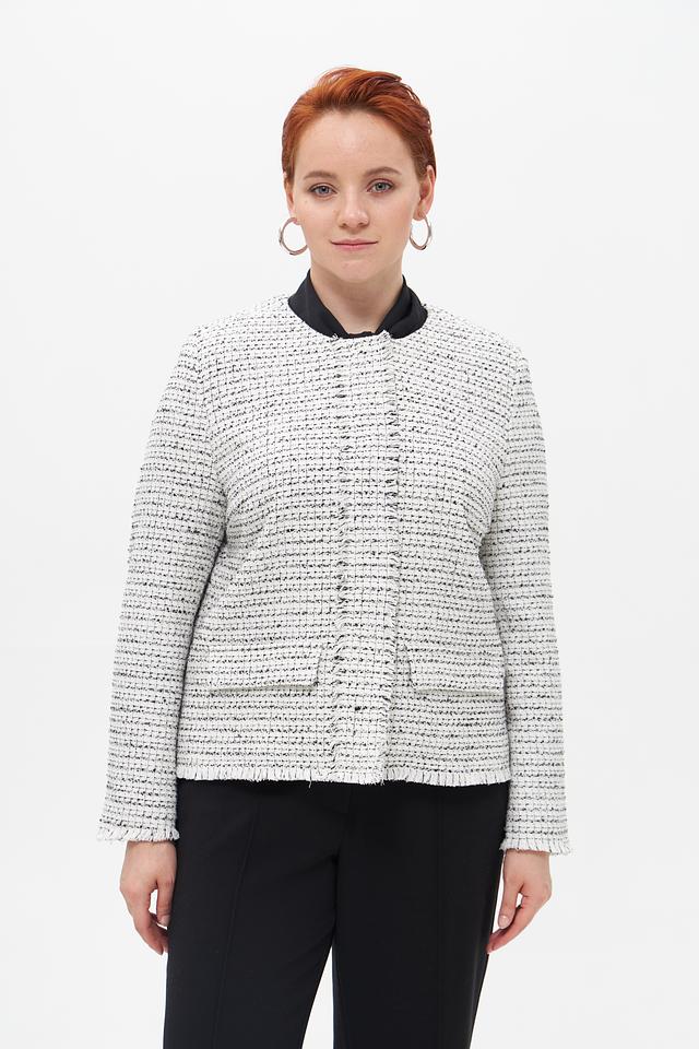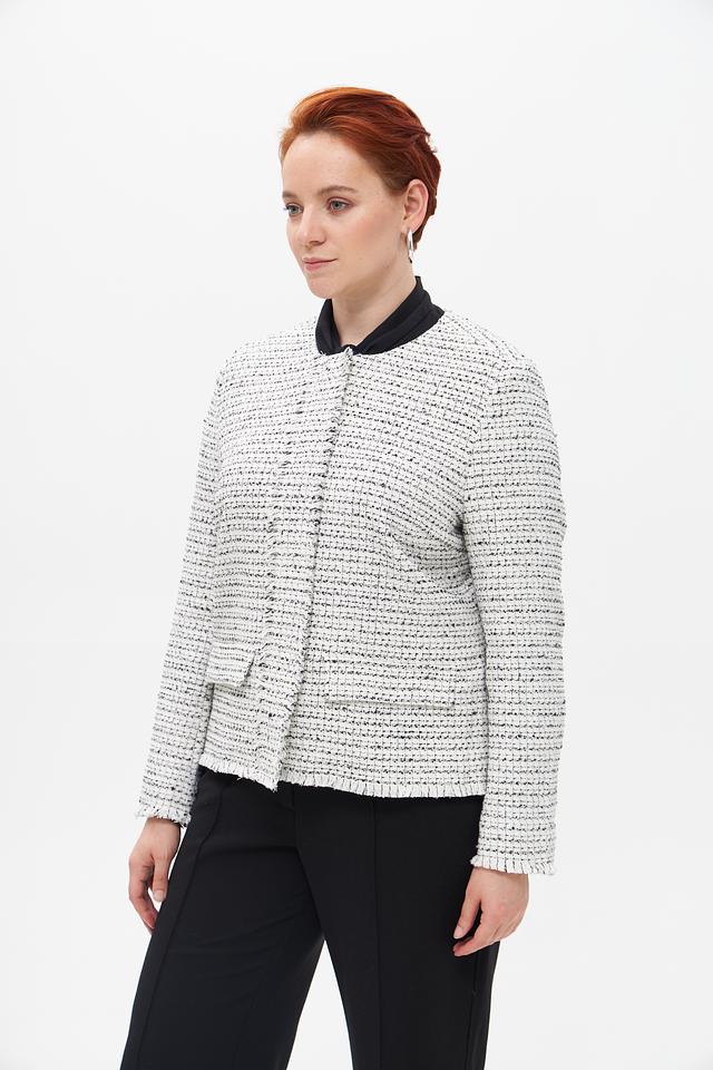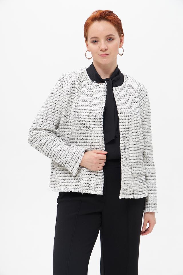 Этот жакет от Olsen станет прекрасным дополнением к вашему гардеробу. Модель выполнена в белой расцветке с классическим клетчатым принтом, который придает образу изысканность.