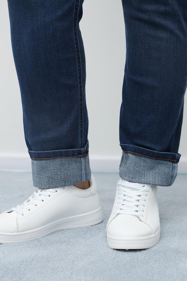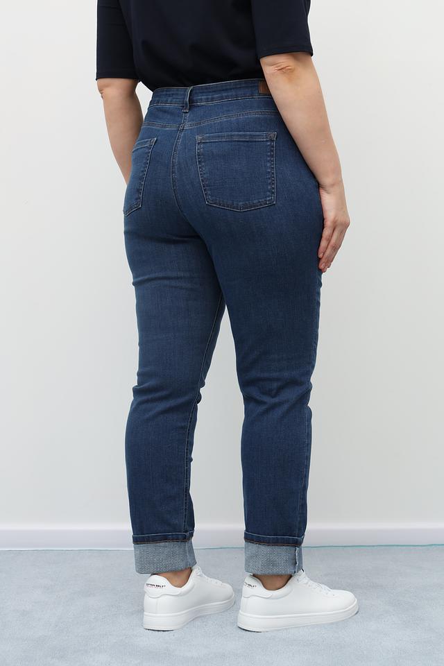 Модель имеет пять карманов, включая два врезных спереди и два накладных сзади. Отличительной особенностью джинсов являются аккуратно выполненные подвороты на щиколотке, которые придают образу непринужденный стиль.