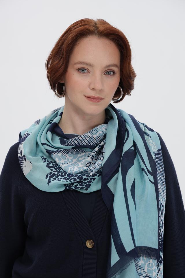 Голубой шарф Olsen с оригинальным принтом станет ярким акцентом вашего образа. Изготовлен из 100% вискозы, приятен на ощупь и хорошо драпируется. Идеально подходит для создания стильных и модных образов. Состав: вискоза 100%