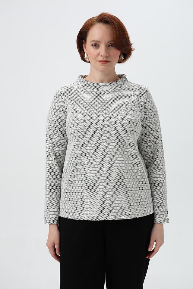 Блуза Olsen белого цвета с изысканным геометрическим принтом станет стильным дополнением вашего гардероба. Модель с длинными рукавами и аккуратным круглым вырезом горловины выполнена из приятной к телу ткани. Состав: полиэстер 56%, хлопок 42%, эластан 2%