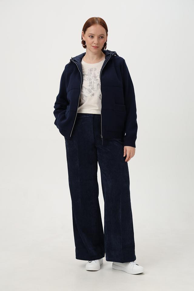 Тёмно-синие вельветовые брюки клеш от Olsen — стильное и комфортное решение для создания модных образов. Модель выполнена из полиэстера с добавлением эластана, что обеспечивает удобную посадку и практичность в уходе. Состав: полиэстер 89%, полиамид 9%, эластан 2%