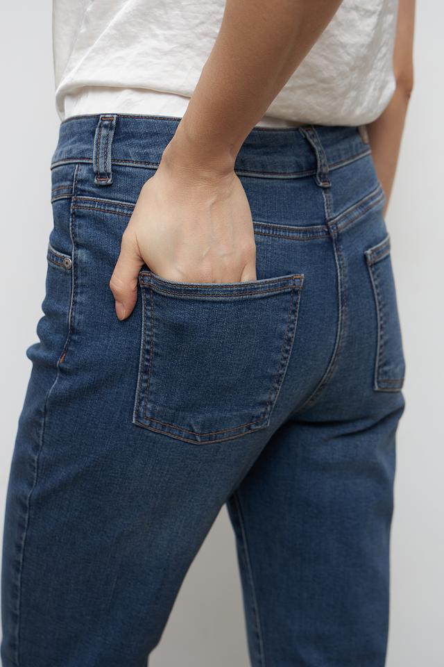 Джинсы имеют стандартную посадку на талии и застегиваются на молнию и пуговицу. Пять карманов – два спереди, два сзади и один небольшой карман для мелочи – обеспечивают функциональность. Ткань отличается плотностью и приятной текстурой.