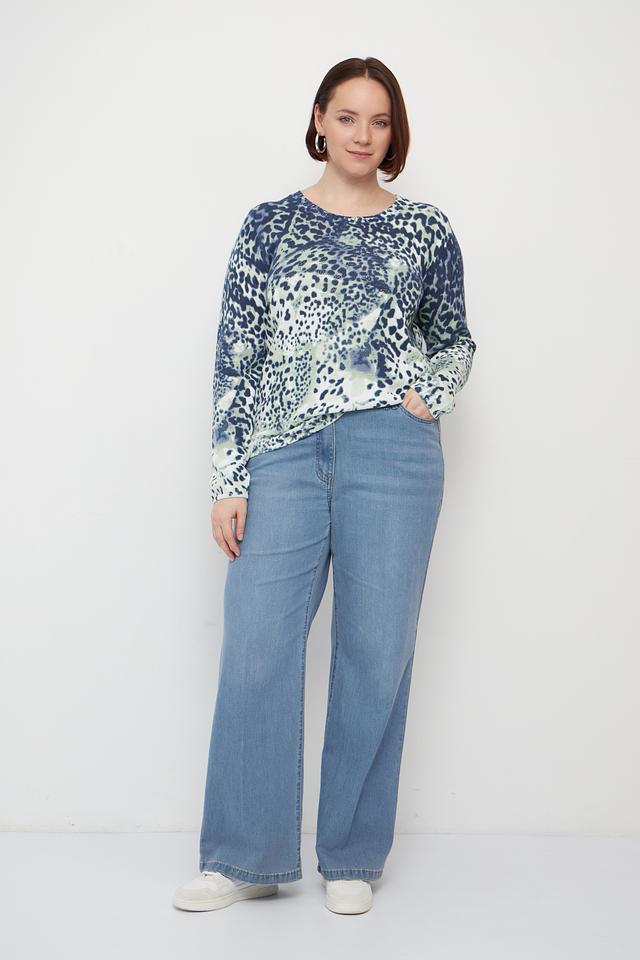 Женский пуловер Olsen сине-зелёного цвета с оригинальным леопардовым принтом. Изготовлен из мягкого хлопка, обеспечивающего комфорт в носке. Стильное и удобное решение для повседневного образа. Состав: хлопок 100%