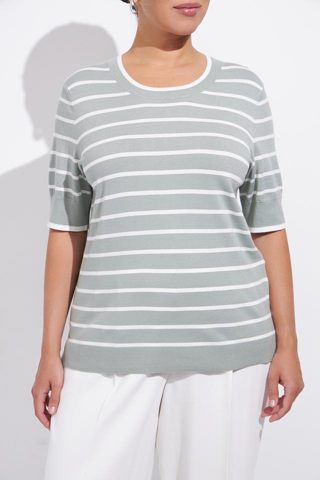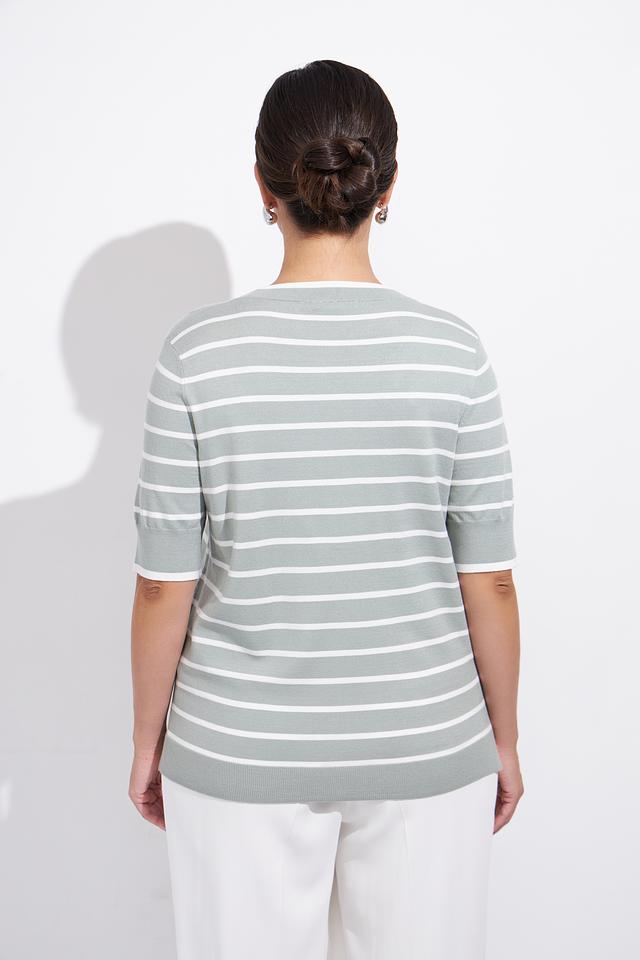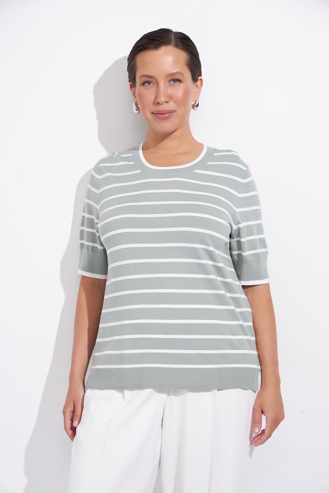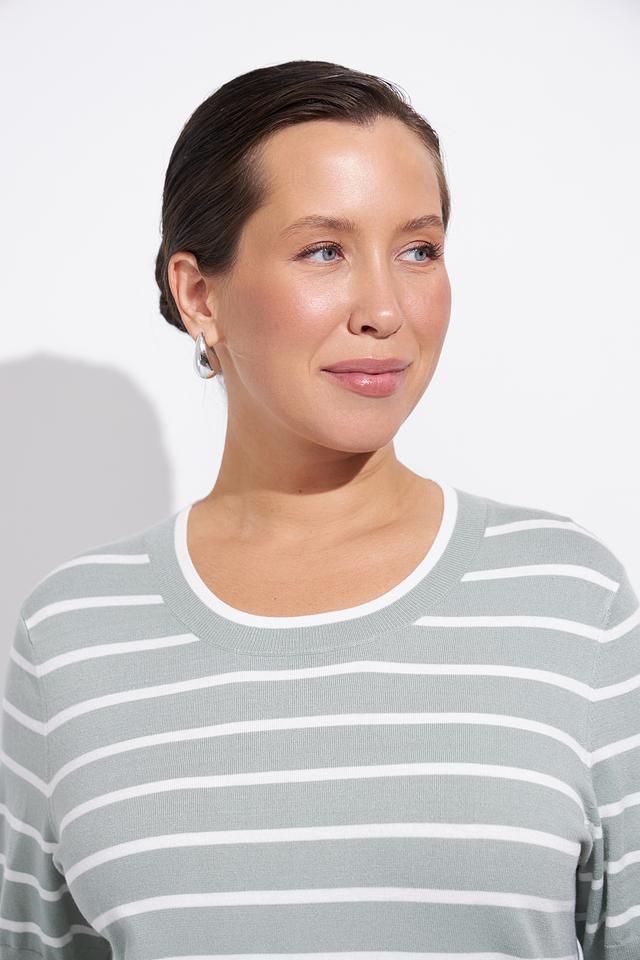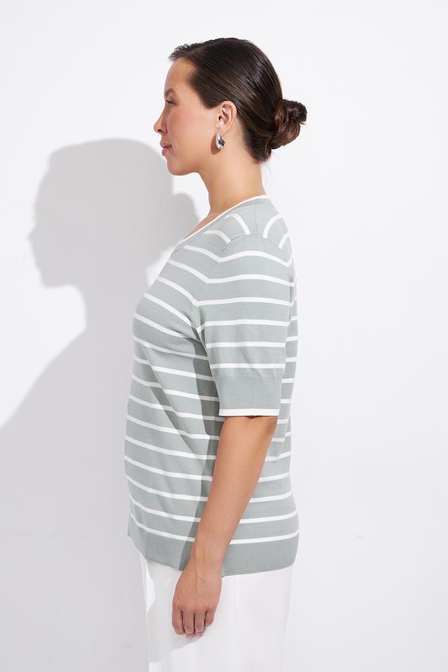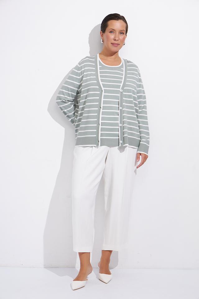 Этот пуловер от Olsen станет отличным дополнением к вашему образу. Он выполнен в спокойном зелёном цвете с белыми полосами, что придает ему свежий и современный вид.