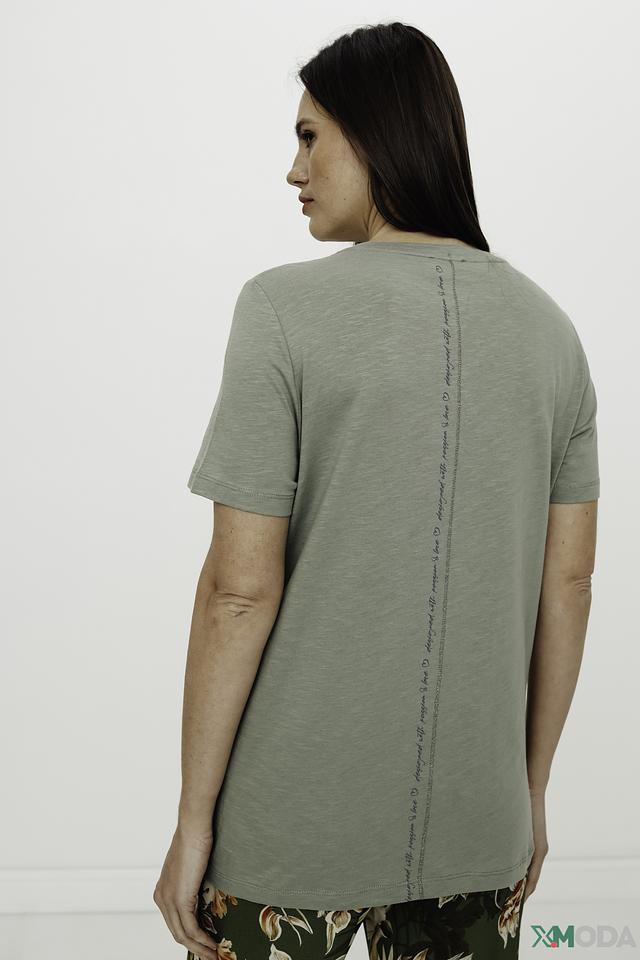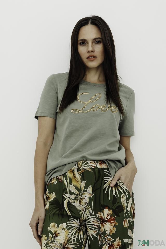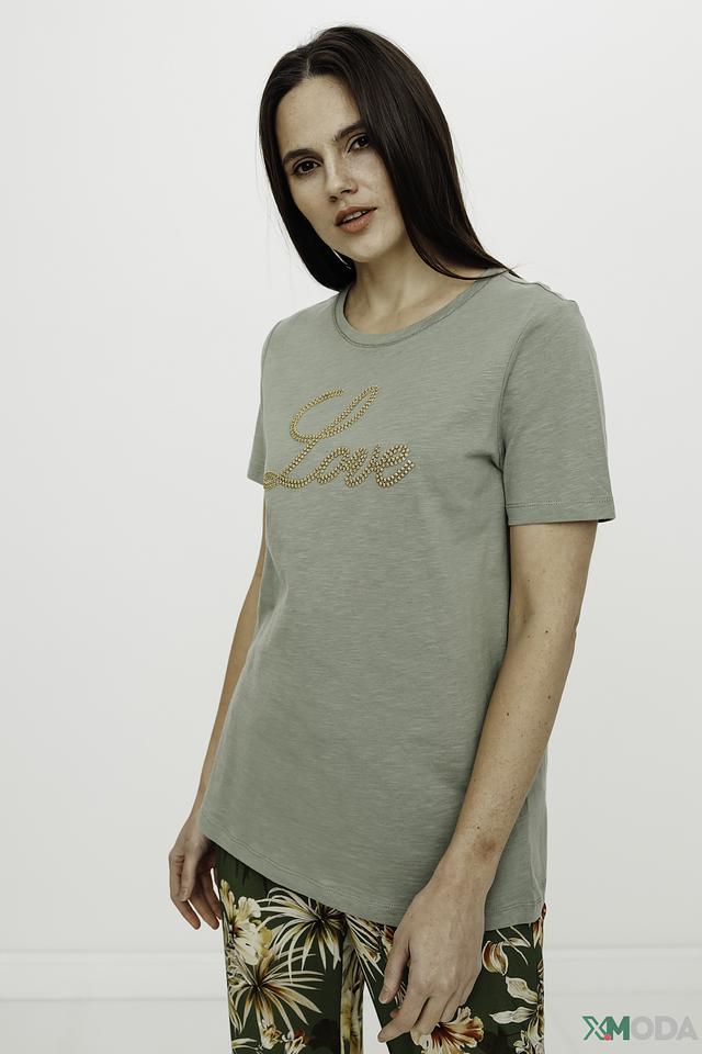 Женская футболка Olsen оливкового цвета с декоративной надписью "Love", выполненная из мягкого хлопка с добавлением полиакрила. Стильная и комфортная модель для повседневного образа. Состав: хлопок 50%, полиакрил 50%
